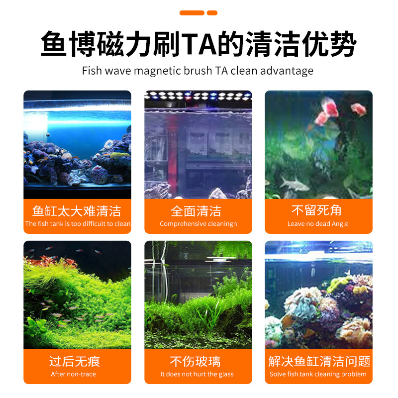 Fish tank magnetic brush Strong magnetic glass cleaning artifact with algae scraper double-sided cleaning brush cleaning cylinder cleaning tool
