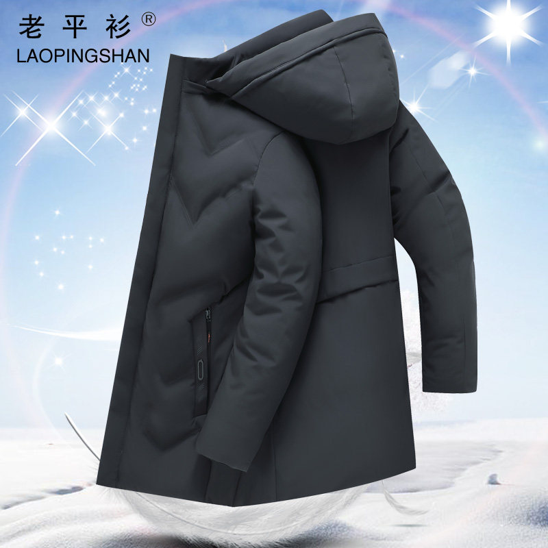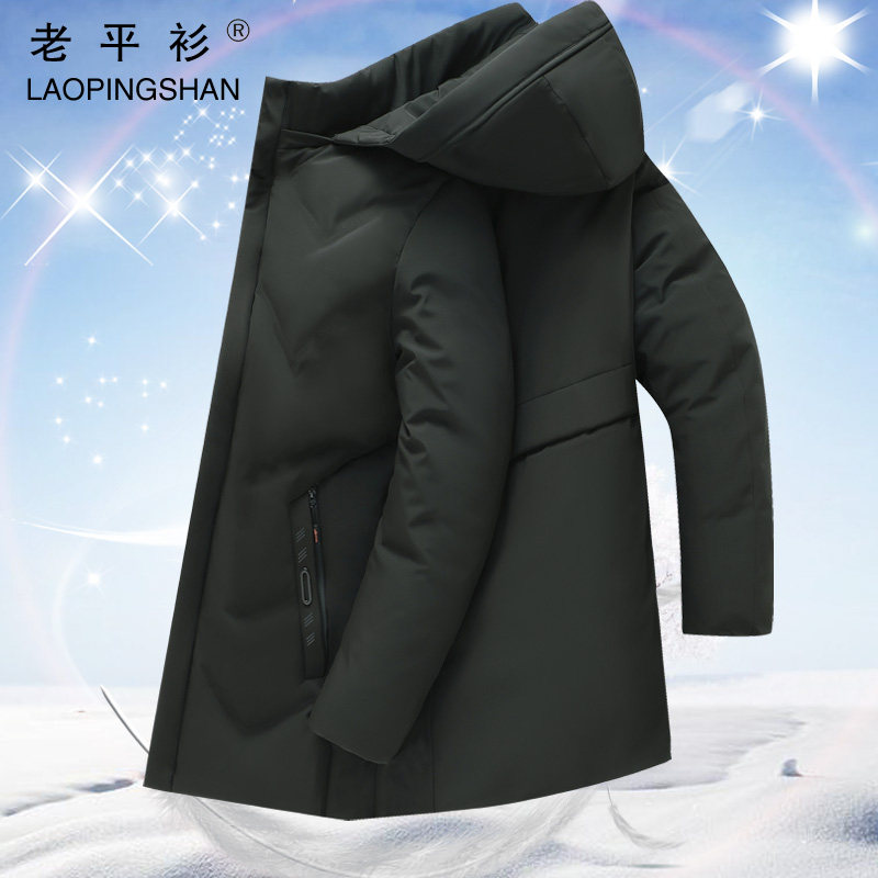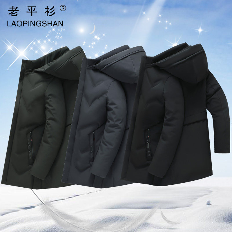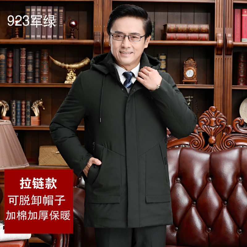 men's winter new hooded mid-length padded winter mid-aged cotton coat down jacket