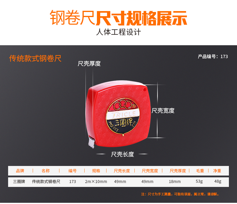 302 Shanghai three-ring brand steel coil ruler 3 meters Stone three-ring coil ruler pull ruler Stainless steel ruler belt 173 2 meters