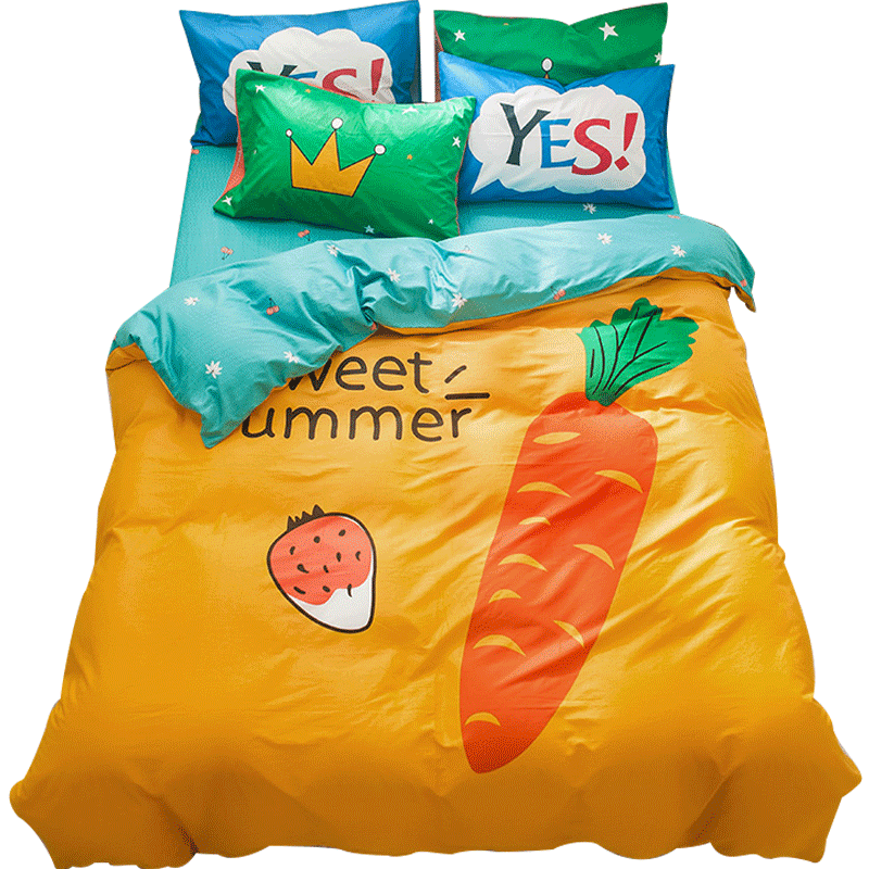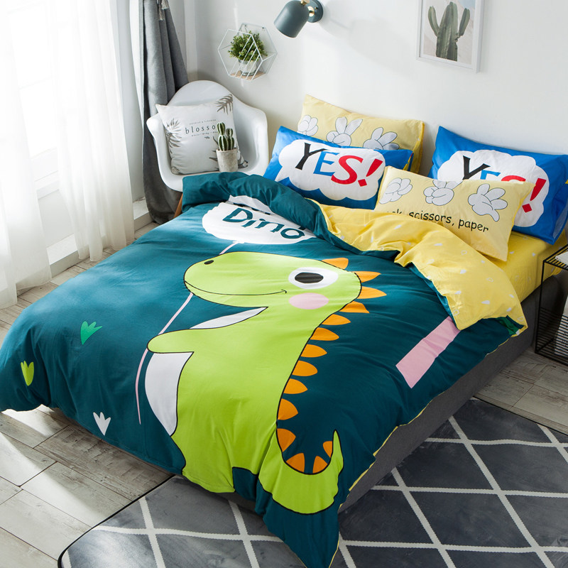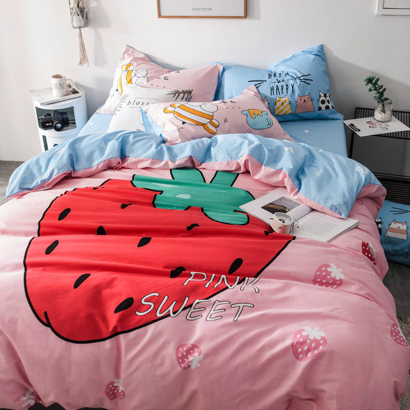 Children's four-piece set Cotton pure cotton boy girl bedding Cute cartoon bed sheet duvet cover 1 5m three-piece set