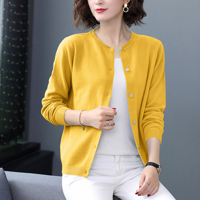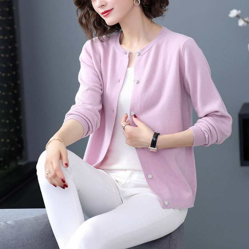 Knitted cardigan coat women's 2022 new loose outerwear sweater autumn top 100 pure wool sweater women's short style
