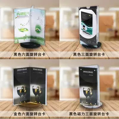 Acrylic rotating table card Six-sided three-sided transparent wine card Vertical billboard display card Triangle table card display rack Hotel menu menu price card Price card Crystal introduction card table card
