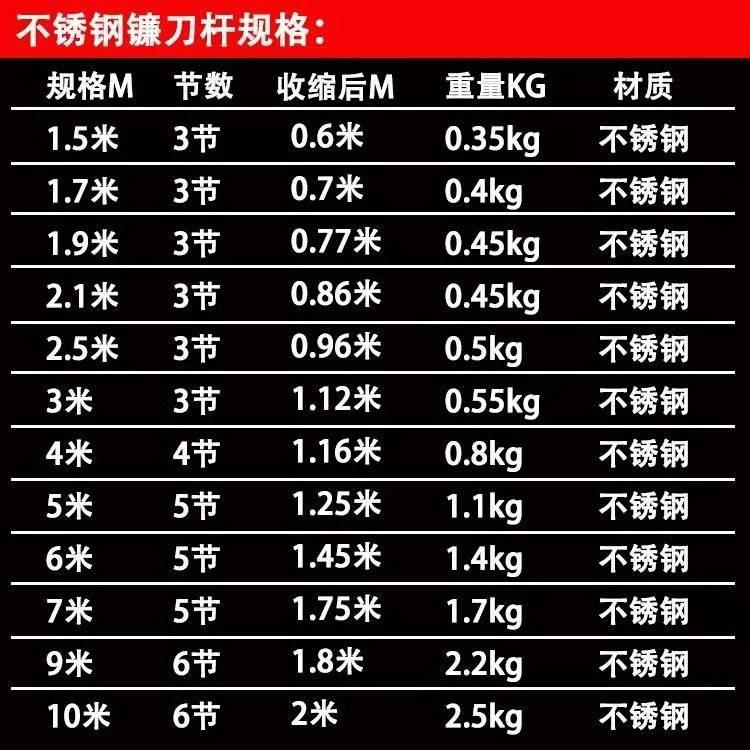 1 5-meter yellow set pole opening knife (send hook) 1 7-meter yellow set pole opening knife (send hook) 1 9-meter yellow set pole opening knife (send hook) 2 1-meter yellow set pole opening knife (