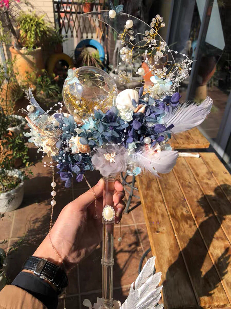 Transparent Korean wedding gift hand-held with acrylic plate handle round tube material DIY pure hand-made custom scepter