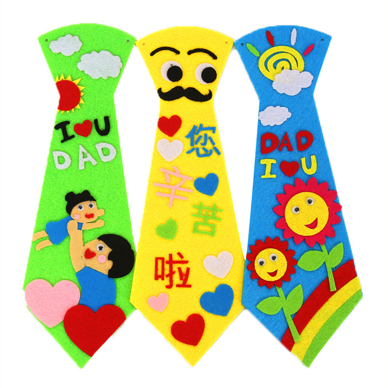 Father's Festival Children Handmade Tie Kindergarten Diy Creative Adhesive Puzzle Making Material Bag Teacher's Festival Gift