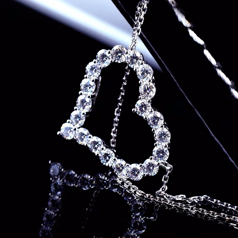 PT950 Platinum Loving Necklace Inlaid Mosanstone Romantic Heart-shaped Lock Bone Chain Female Net Red Fresher Brief About Fashion
