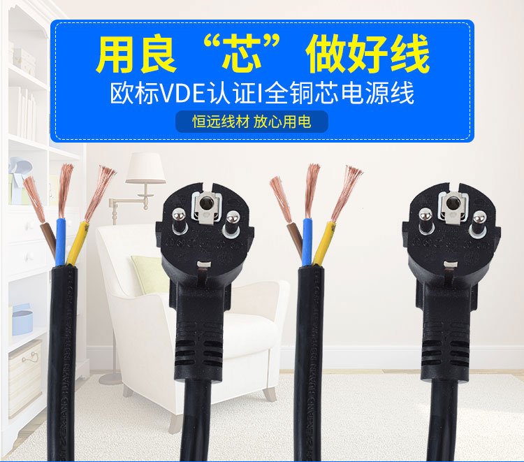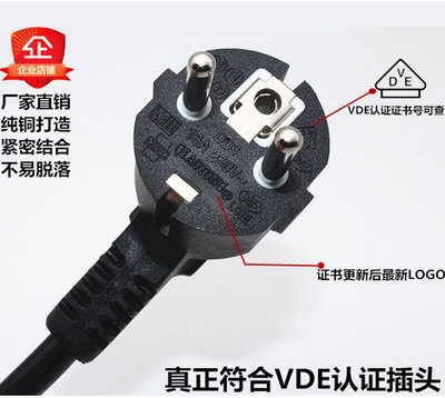 European standard power cord pure copper 3-core 0 75 1 1 5 2 5 square 3 5 meters VDE European three-core plug with wire