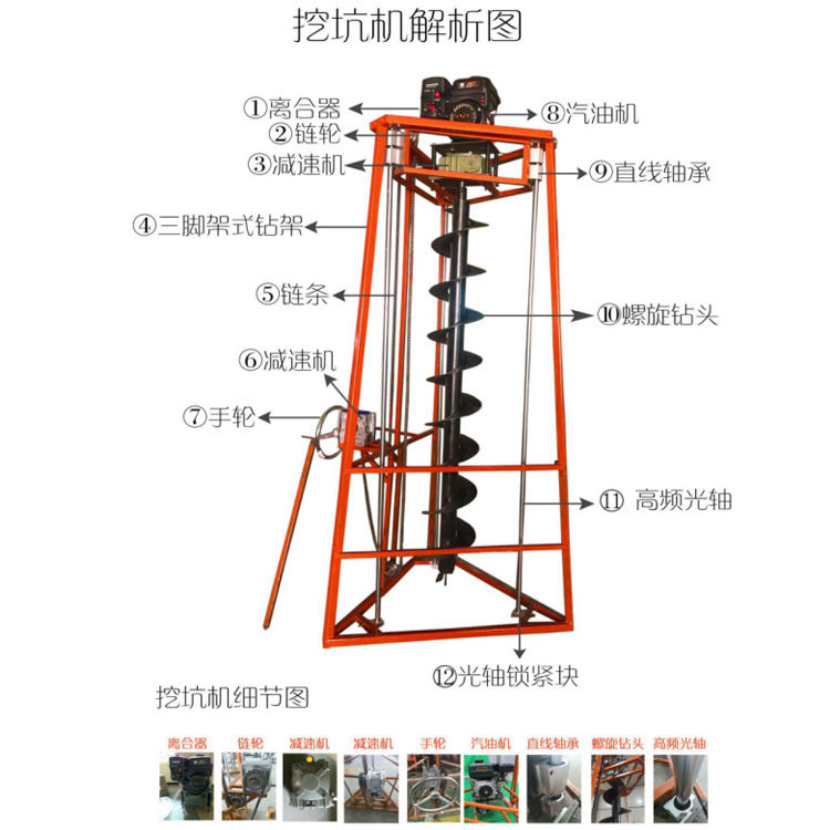 Direct sales tripod digging pit machine utility pole drill pit machine petrol type tree planting pit machine 7 5 10 15 horsepower-Taobao
