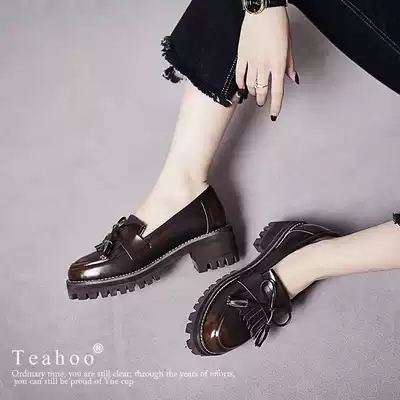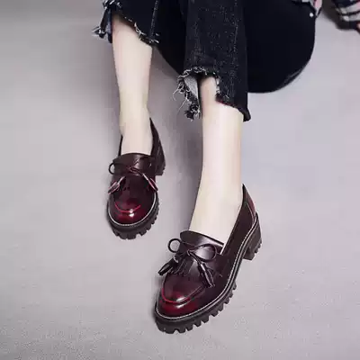 2021 Spring and Autumn New thick heel with Joker shallow shoes bow tassel single shoes British style small leather shoes women