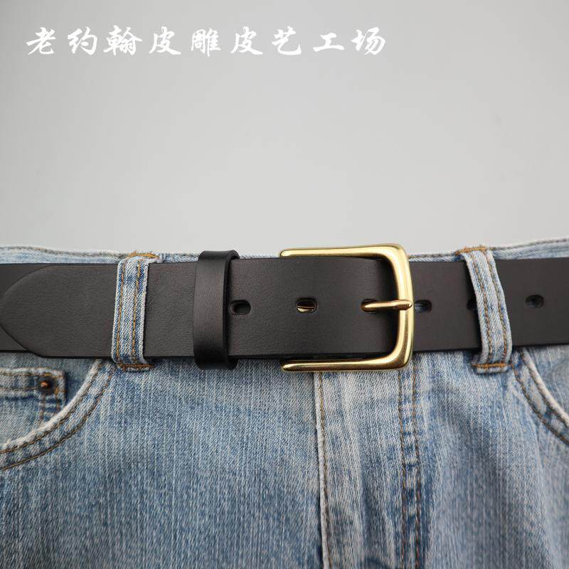 Original American imported 4 5mm thick American saddle leather men's casual high-end belt with pure copper belt buckle