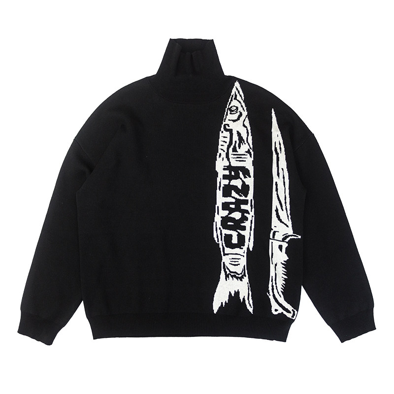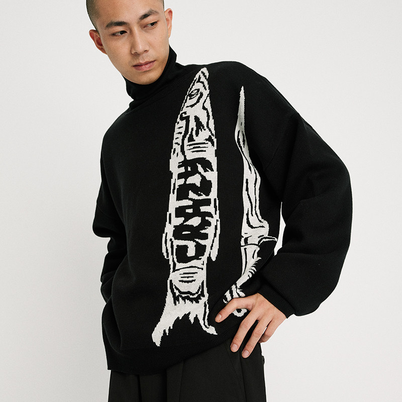 Food Fishing SEDUCEgear Autumn Winter Clothing Black High Collar Sweater Male Personality Minimalist Warm Knit Cardigan