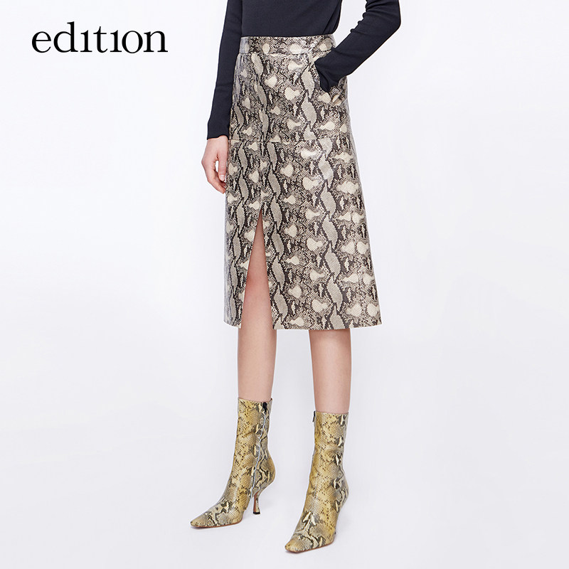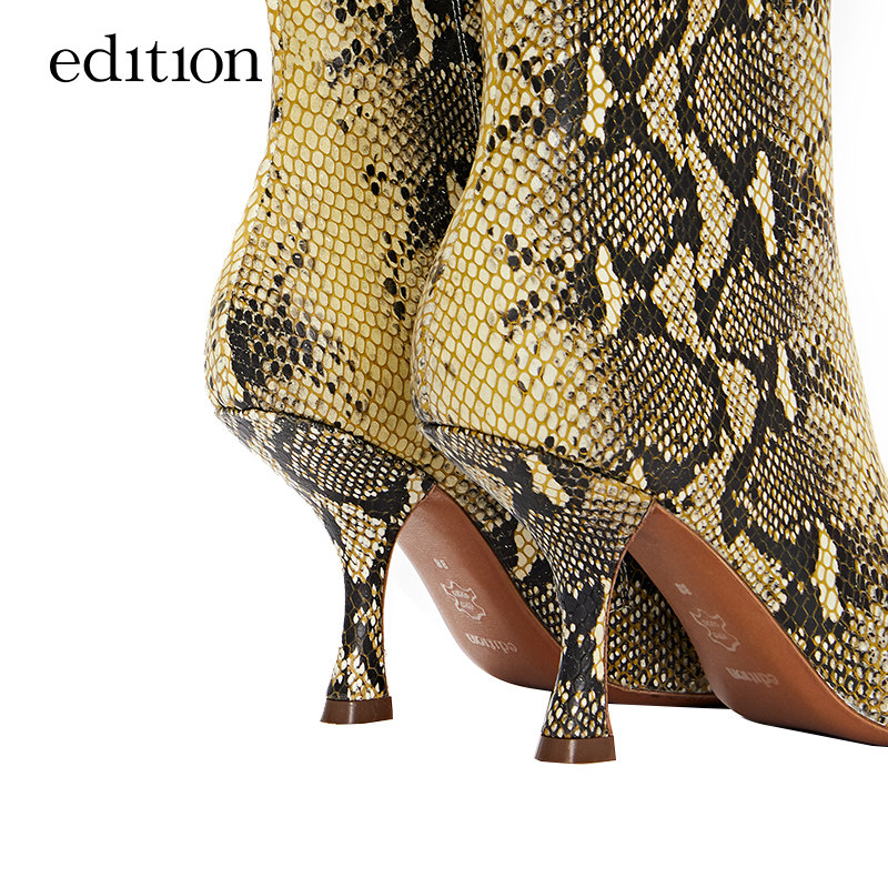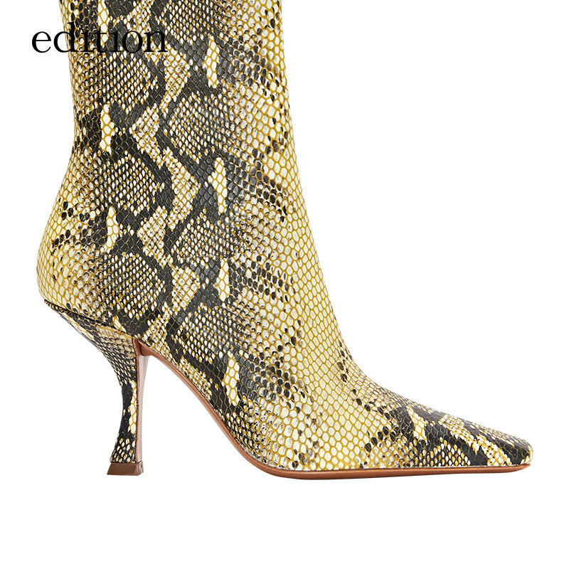 Edition serpent leather boots female winter style genuine leather European and American wind pointed high heel cylinder boot moco