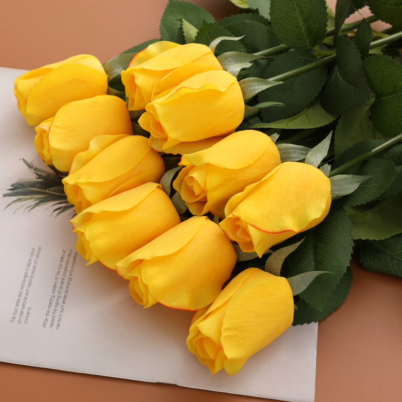 High-end Hand Feel Rose Emulation Flower Bouquet Single fake flowers furnishing 10 branches Living room table tea table Decorations Pendulum-Taobao