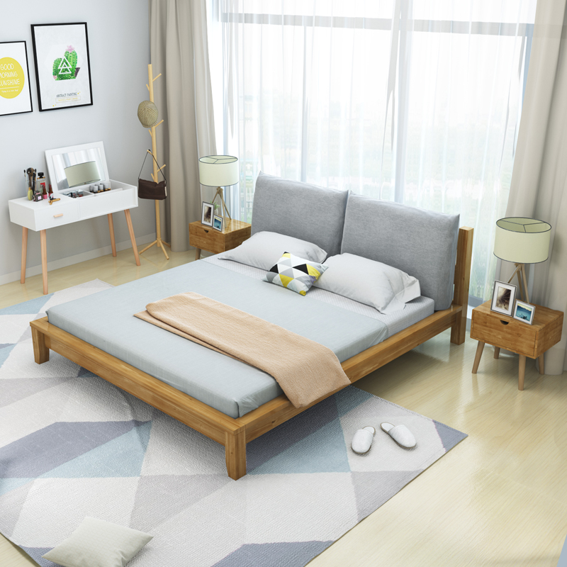 Nordic all - solid wood bed modern simple soft - dependent double bed 1 8 you 1 5m small household economy master bedroom style