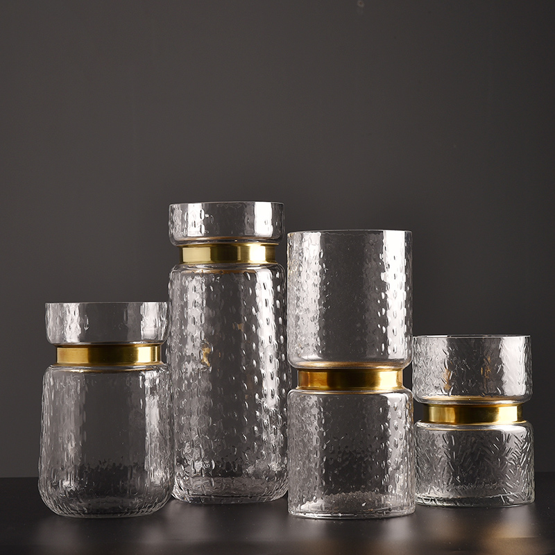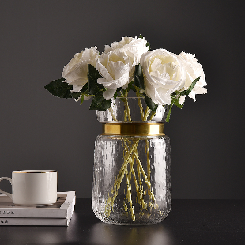 Day series hammered light extravagant and transparent glass vase hem Living room table flowers flower arrangements Water pewter Floral Creative Ornaments