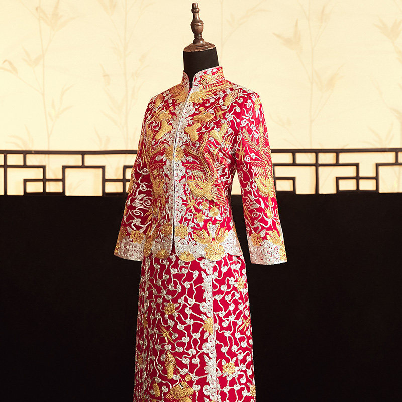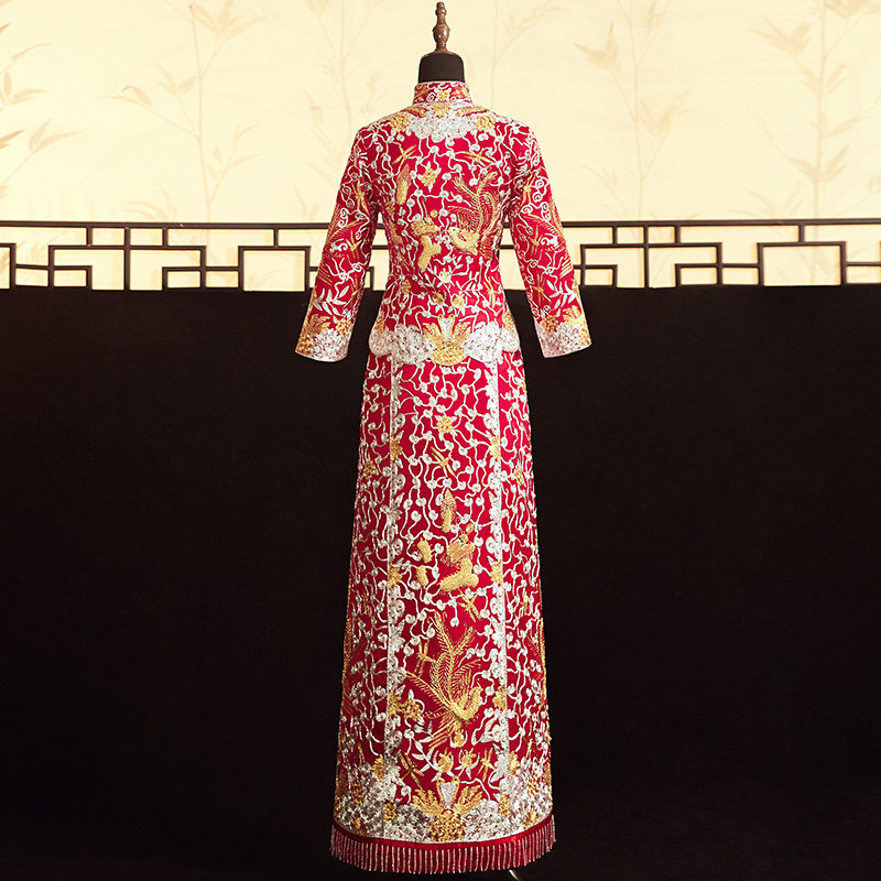 Show and dress The bride 2022 new summer Chinese bridal clothes handmade embroidered wedding dragon and pineapple hanging wedding dress Out of the house Toast Toast