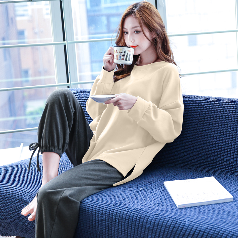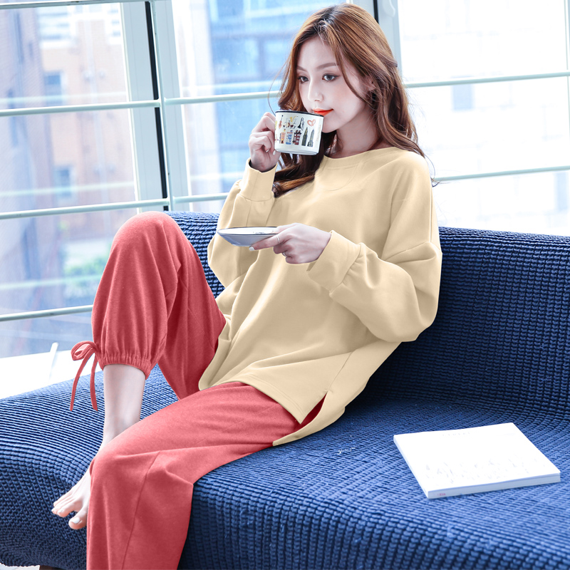 Women's pajamas spring and autumn pure cotton long sleeves with chest pad can go out autumn and winter Korean style casual home clothes can be worn outside - Taobao