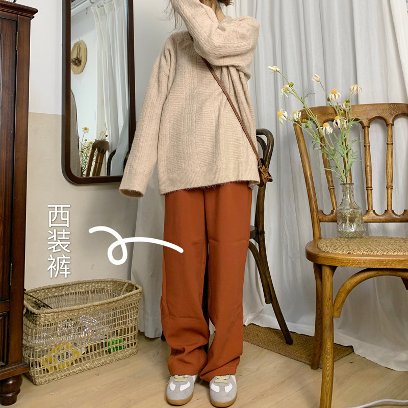 High waist suit pants women's straight tube slim black gray 2019 autumn and winter new loose drape wide-leg casual pants trend