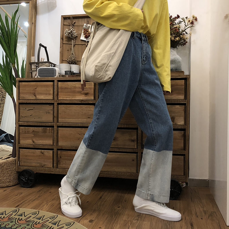 yghome contrast color loose straight jeans men's 2021 autumn new chic casual drape wide-leg trousers trend