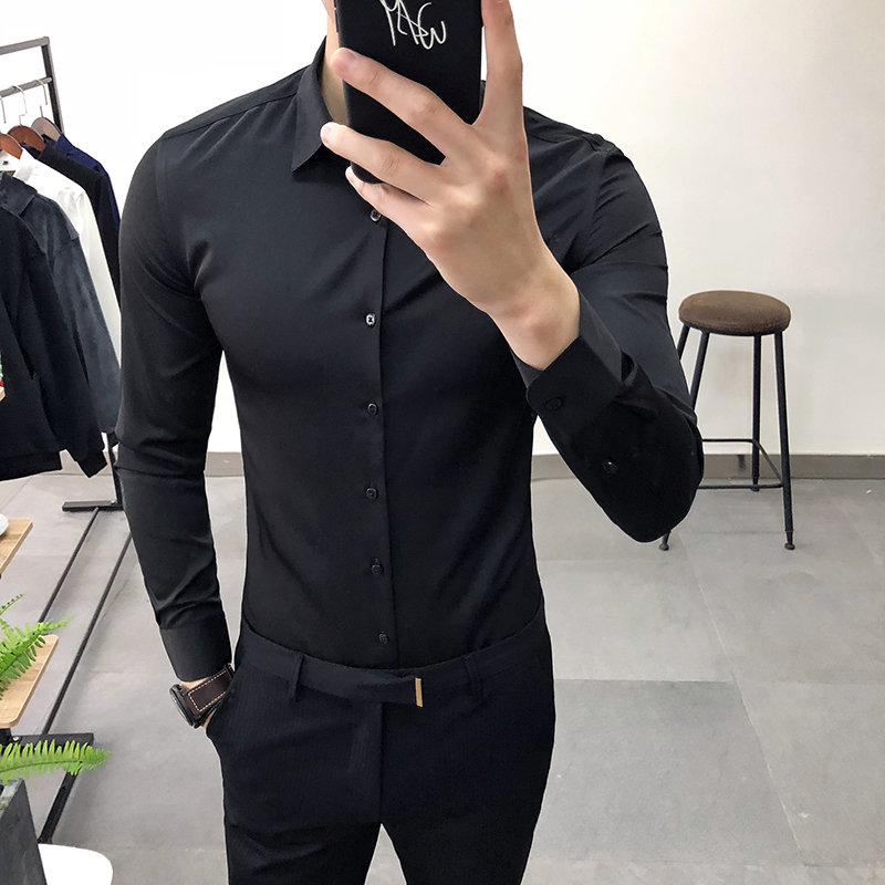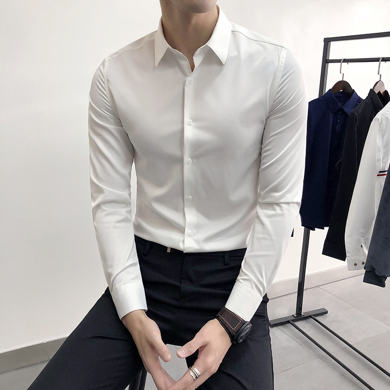 White shirt male long sleeve Korean version trendy workwear for men free of ironing casual shirt Inn men's clothing