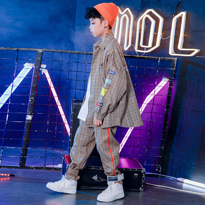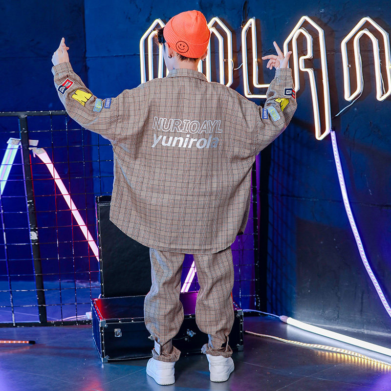 Children's hip-hop suit hip-hop boy plaid jacket tide loose pants toddler hiphop performance hip-hop clothing
