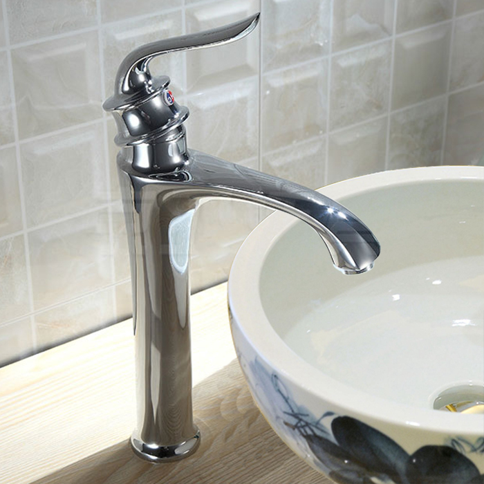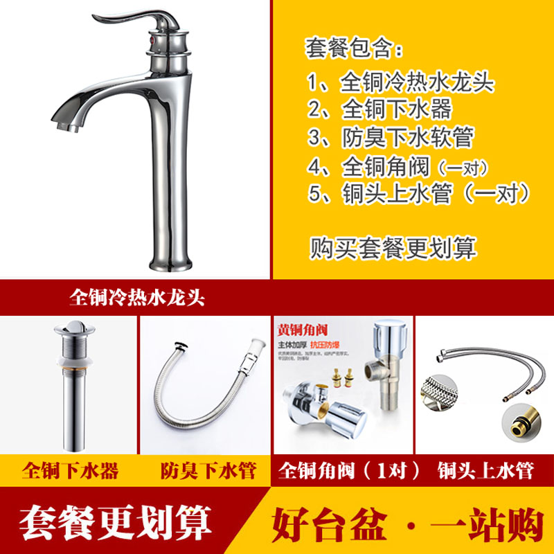 All copper basin faucet Silver hot and cold water faucet Plus high platform basin washbasin Bathroom basin Household faucet