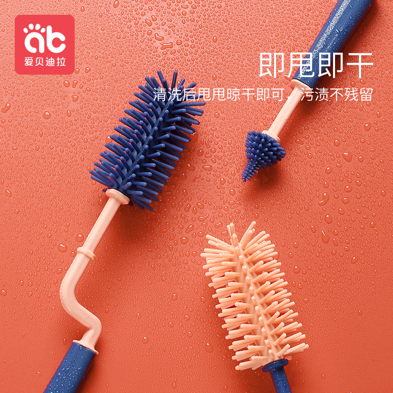 Baby Silicone Wash Bottle Brush Cleaning Brush Cleaning Set Rotating Nipple Sponge Bristle Brush Shabu Newborn