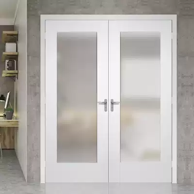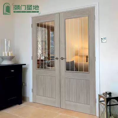 Two-door wooden door Villa indoor open door Modern simple living room solid wood glass door custom Nordic room door