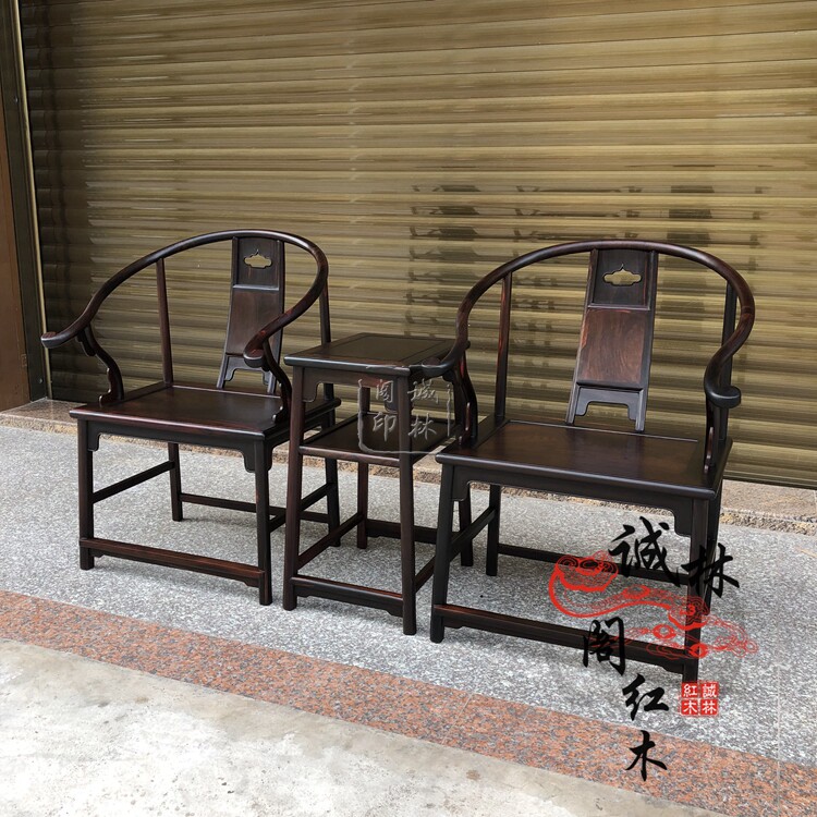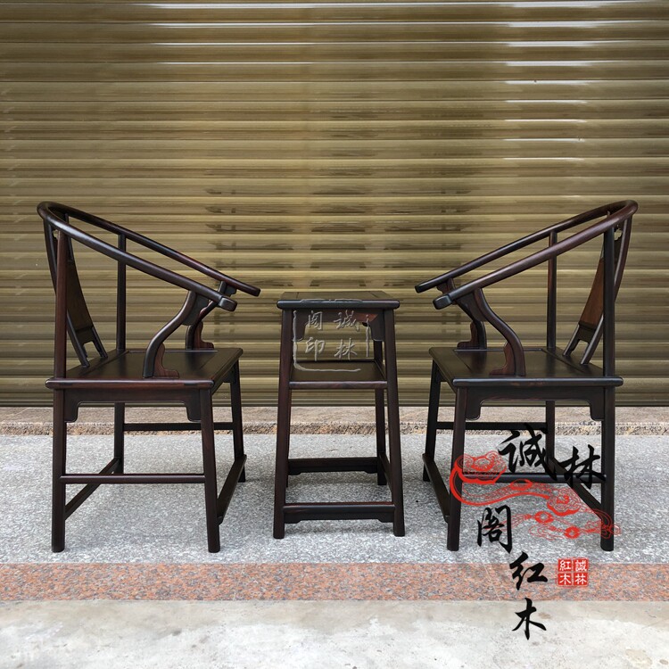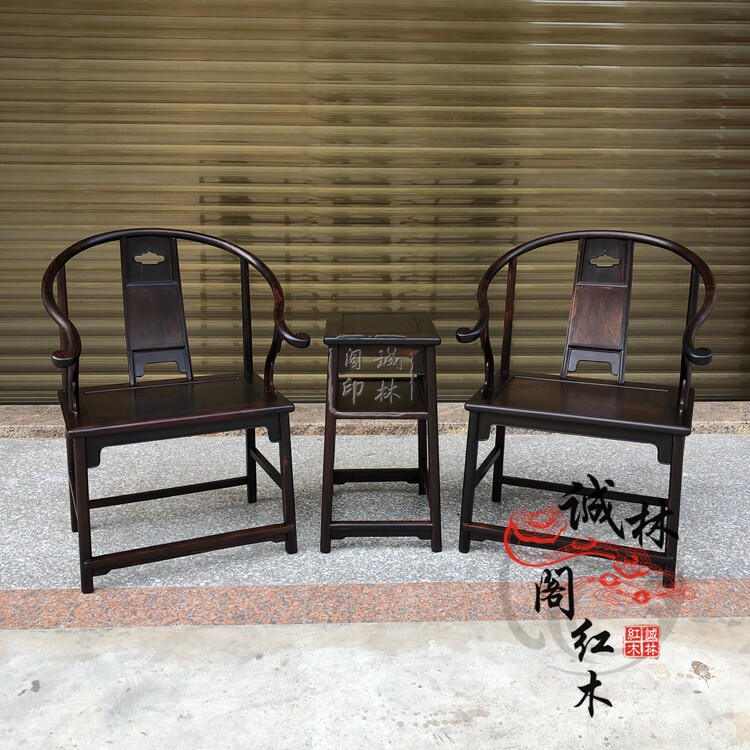 Lao Great Red Acid Branch Chair Three Sets Solid Wood Imperial Palace Chair Surround Chair Living Room Red Wood Antique Backrest Chinese Chair