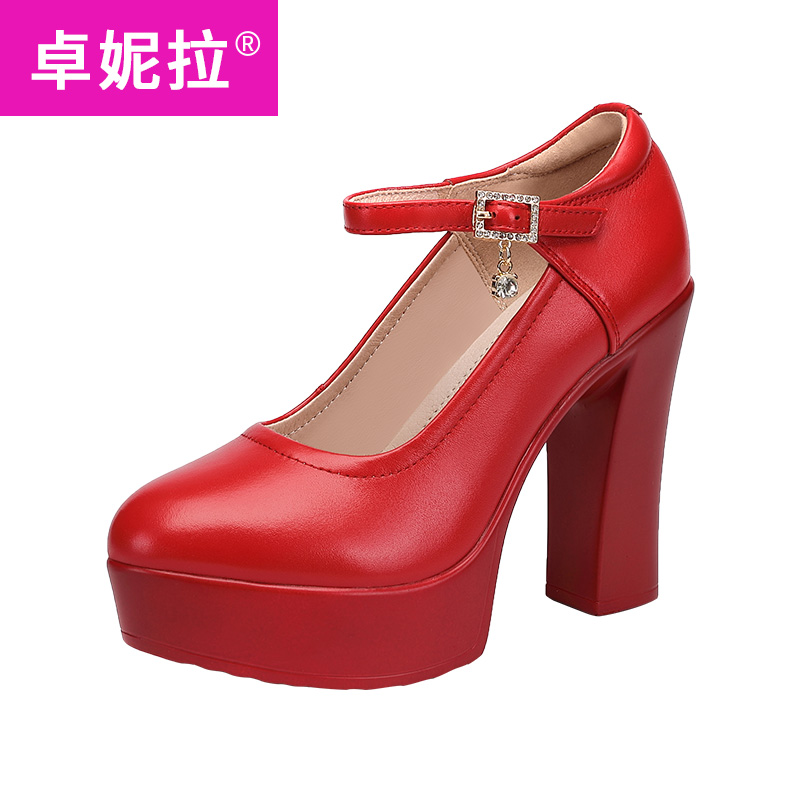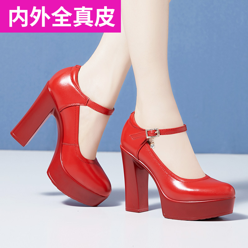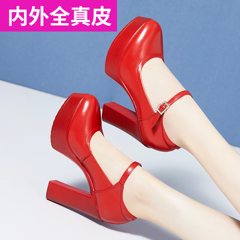 Red wedding shoes, soft cowhide, non-grinding cheongsam model catwalk shoes, high-heeled women's shoes, thick-heeled leather shoes