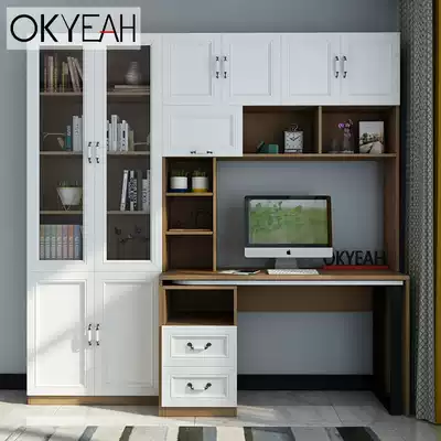 Desk bookcase integrated table with bookshelf combination corner double simple modern rotating table Home study table