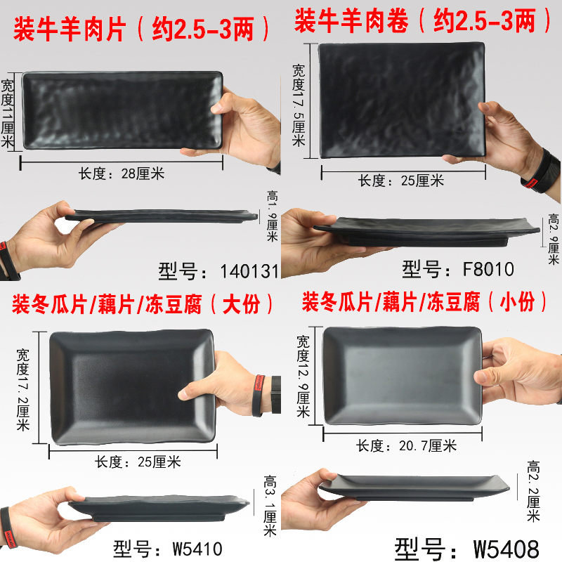 Dense Amines Chaoshan Hotpot Pan Black Rectangular Beef Plate Chongqing Hotpot Flat Pan Dining Room Hotel Commercial Cutlery