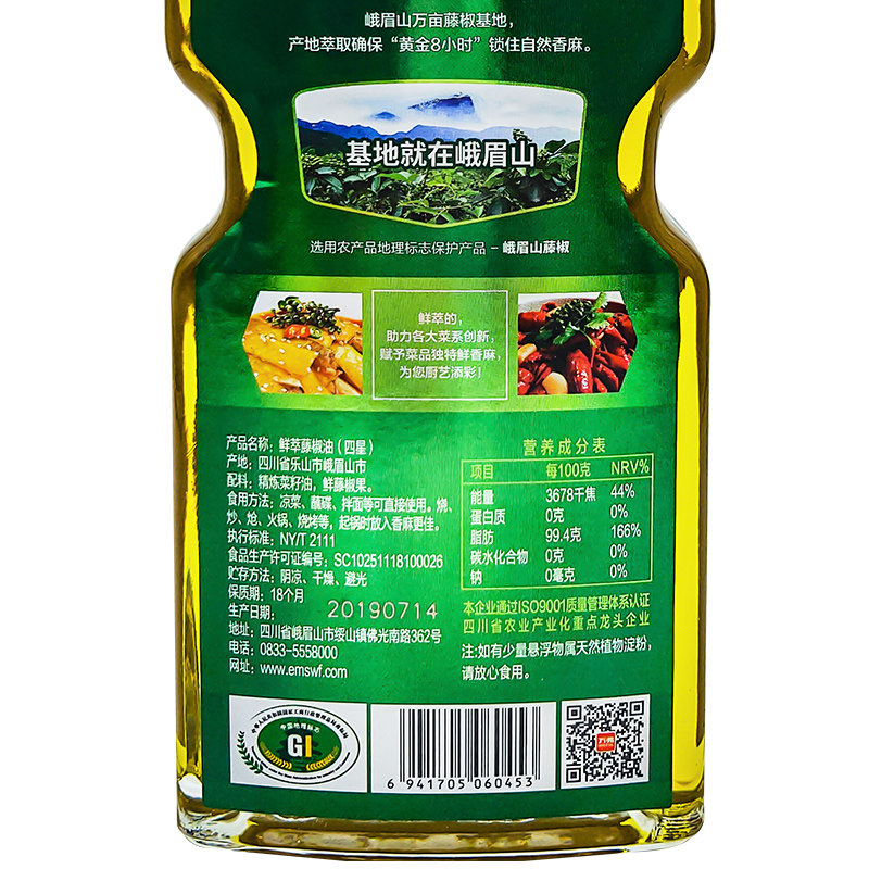 Sichuan Vine Pepper Oil 500ml Emei Mountain Special production ten thousand Flint sesame oil green pepper Hanyuan Pepper Oil Commercial