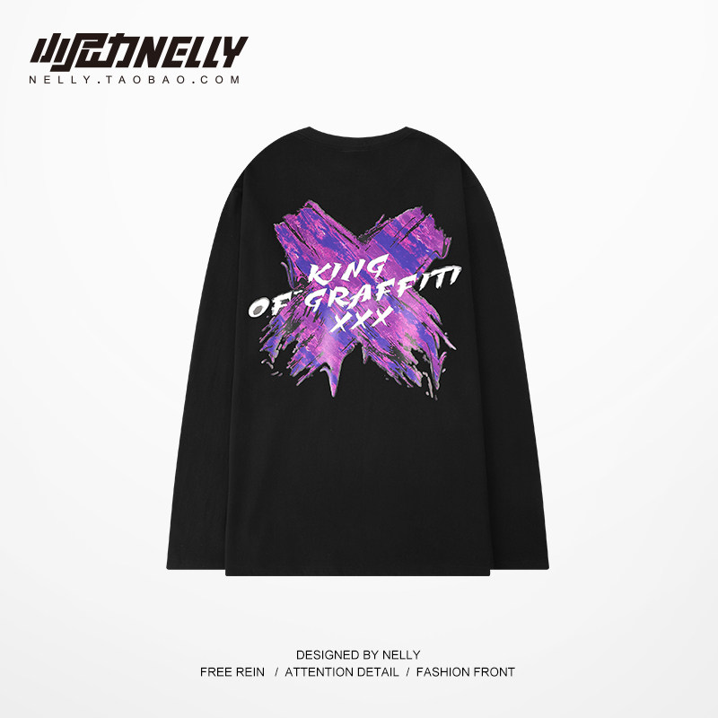 Ins national tide letters graffiti bottoming T-shirt tide brand men and women hip-hop splash ink loose casual top long-sleeved T-shirt
