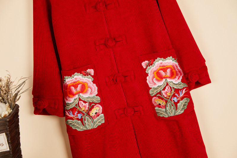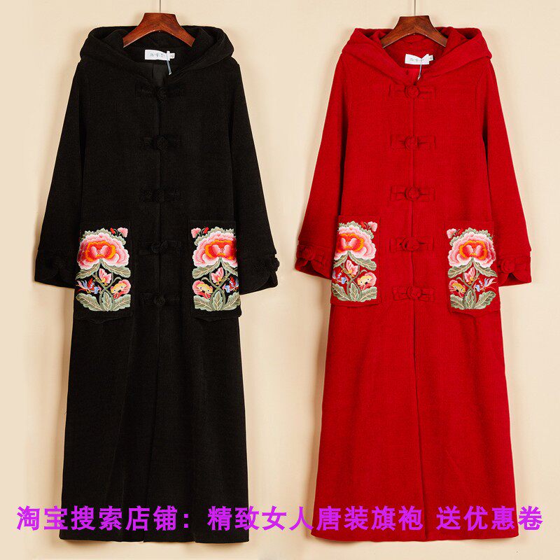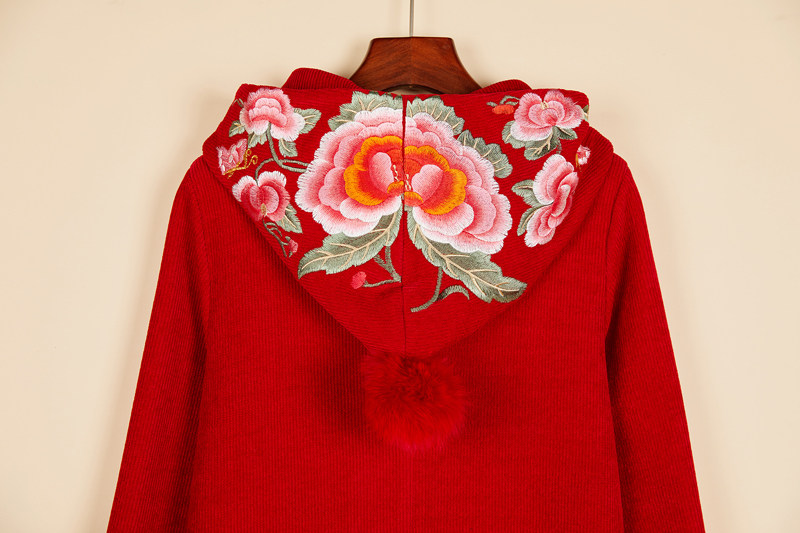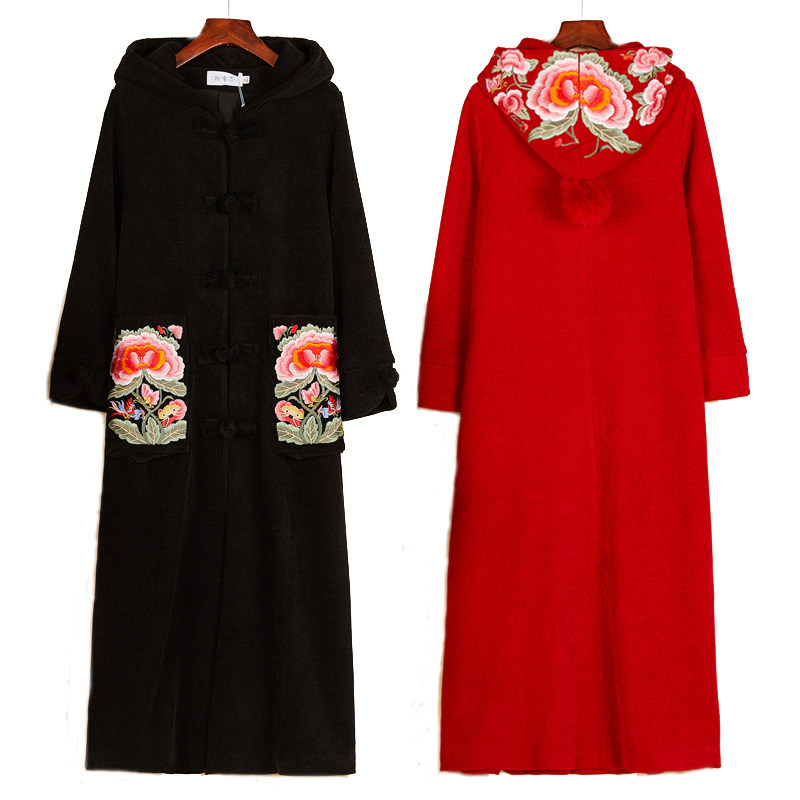 Schsnowl Spring Dress New National Wind Women's Clothing Elastic Cedar Embroidery Sashimi Embroidered With Cap Windsuit Long Version Coat Woman