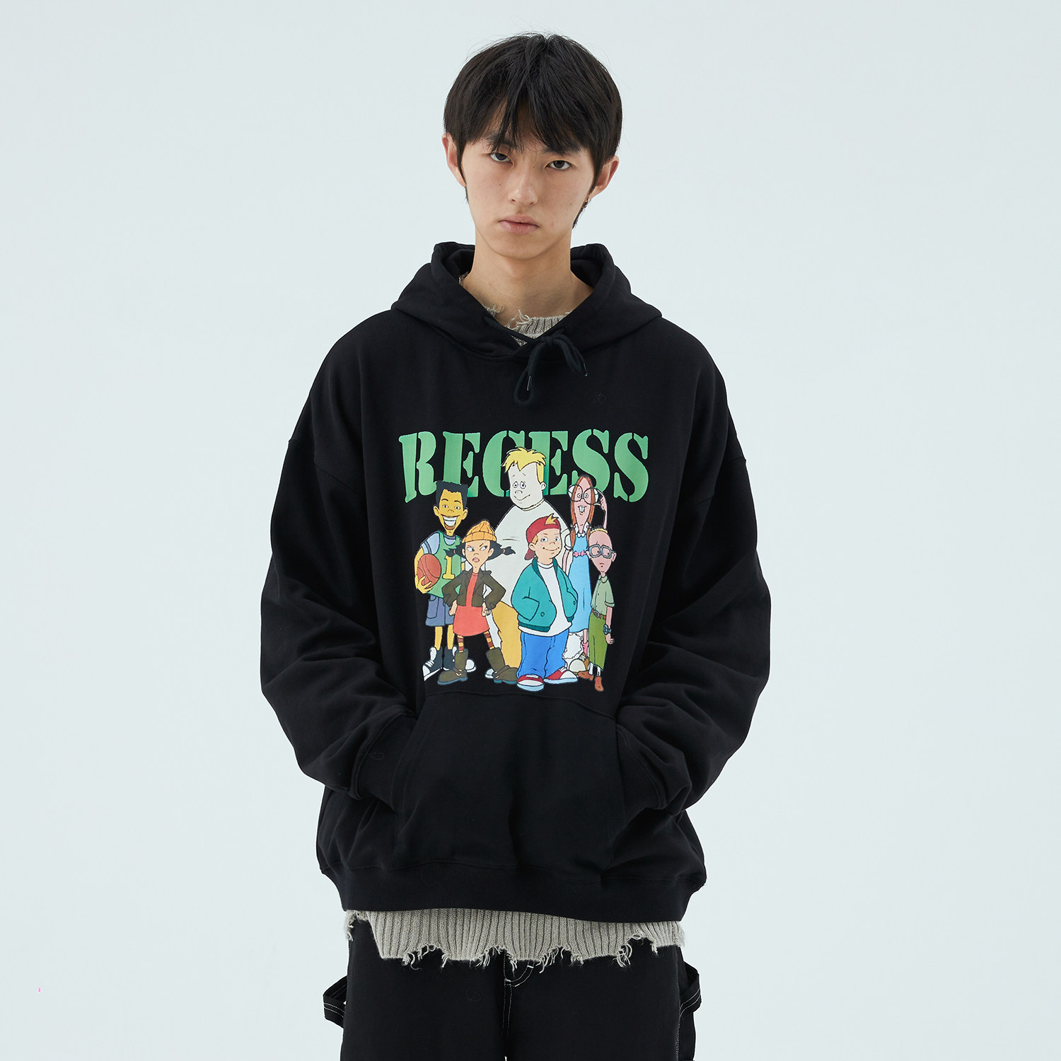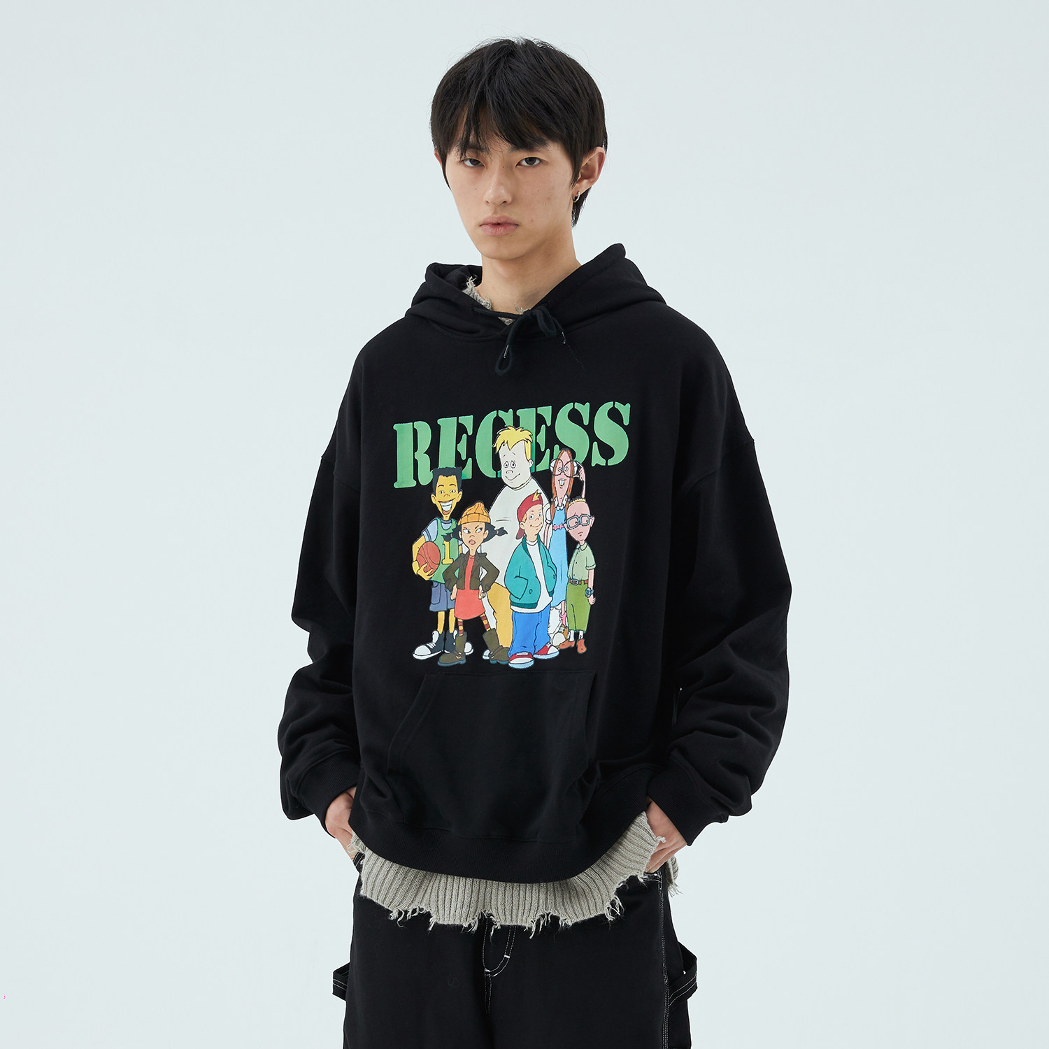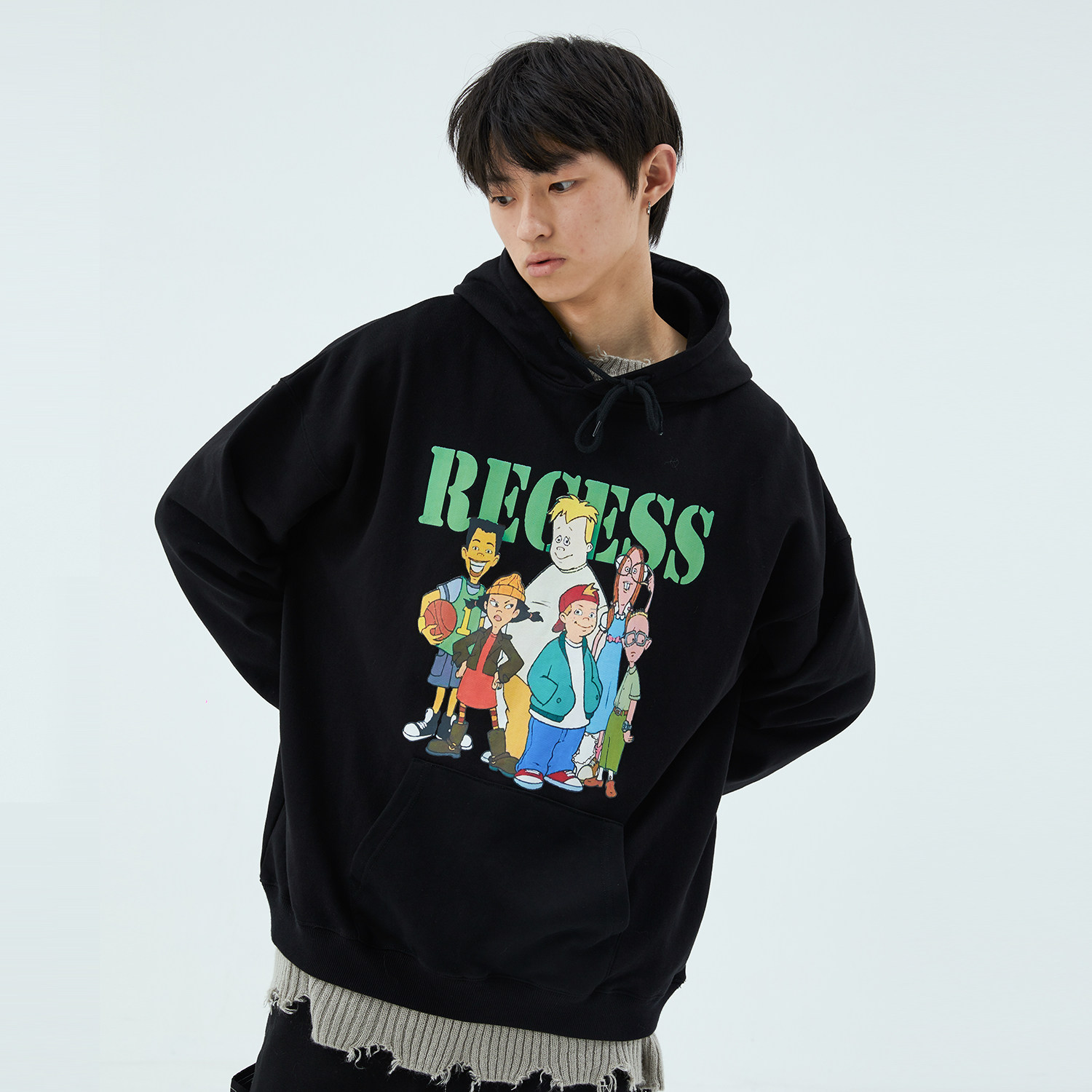 HUGALLGUILT autumn and winter national tide retro cartoon character printing cotton printing thick cotton T pullover trend top