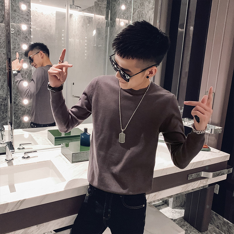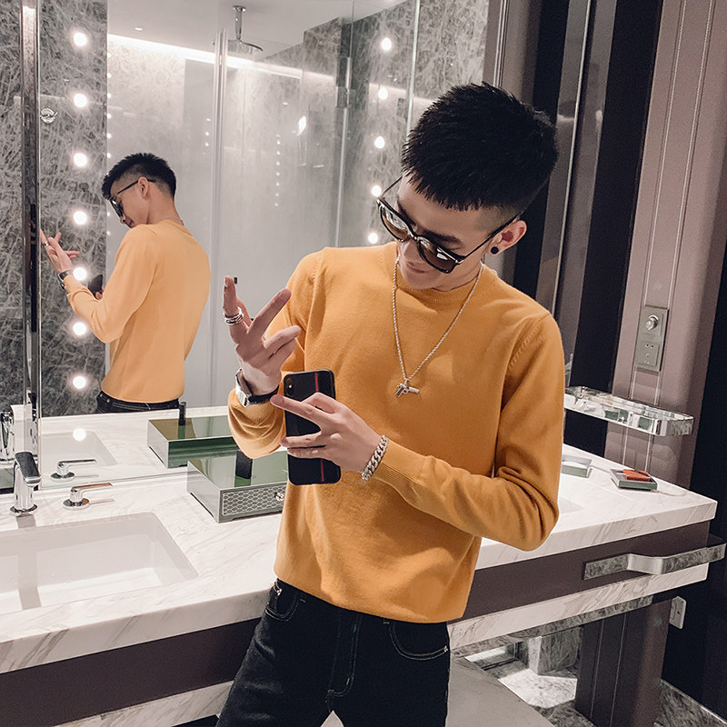 2020 new spring autumn knitted sweater men Korean fashion fashion wild solid color base shirt autumn clothes