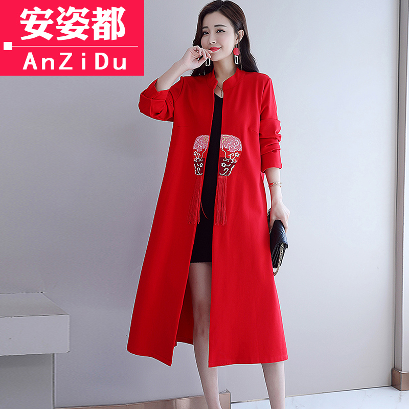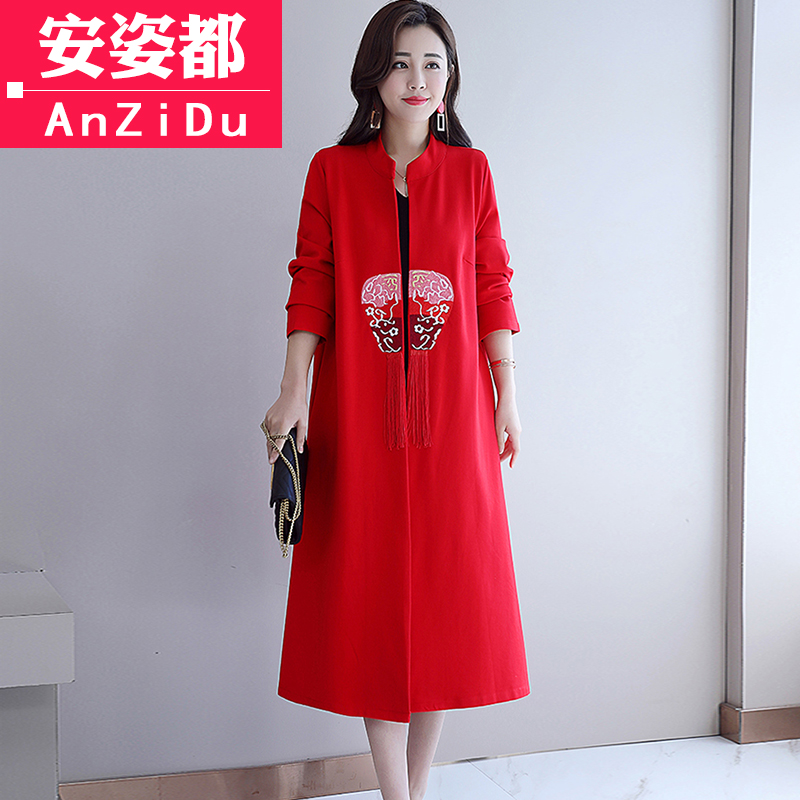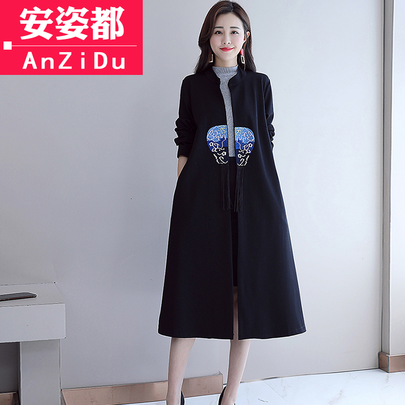 Autumn Outerwear Loose Qipao Outfits Outfits Outfits Chinese Wind Women's Clothing Retro Embroidered in the Long version of the jacket
