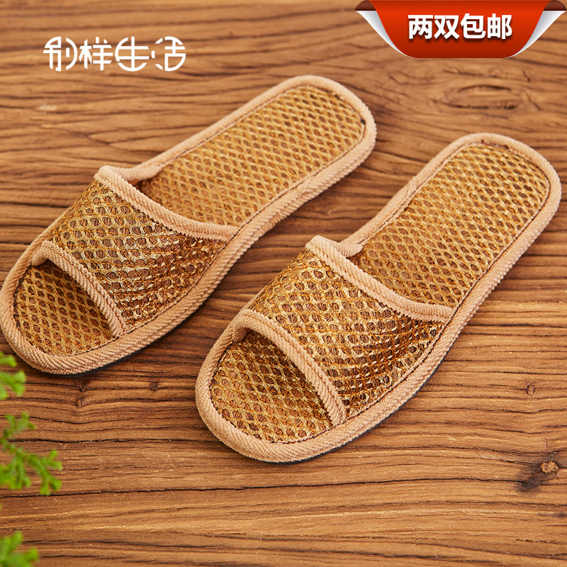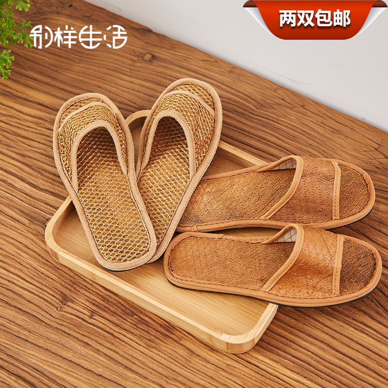 Mountain Brown Sweat-absorbing Deodorant Thick bottom Palm slippers Home Summer men and women breathable sandals Slippers Linen Non-slip Brown Slippers