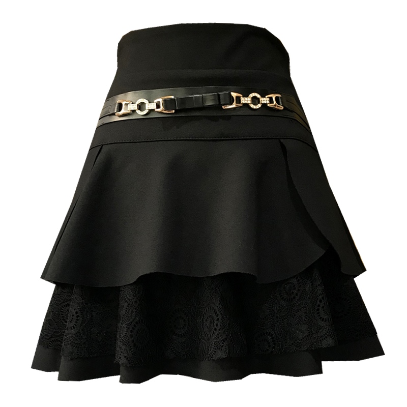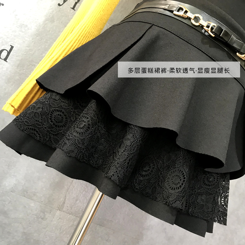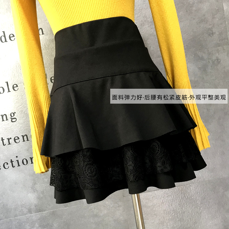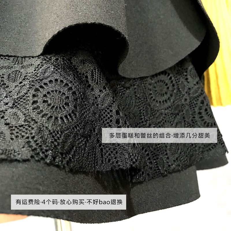 Skirt Spring Women's New Elastic Waist Lace A-line Cotton Slim Multi-layer Cake Skirt Black Lining Skirt