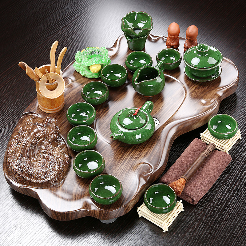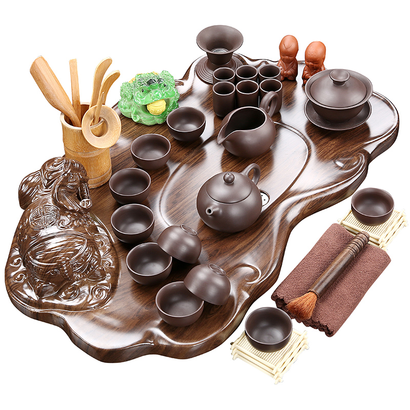 Whole set kung fu tea set home simple tea table solid wood tea tray tea tea purple sand glass teapot tea ceremony tea sea