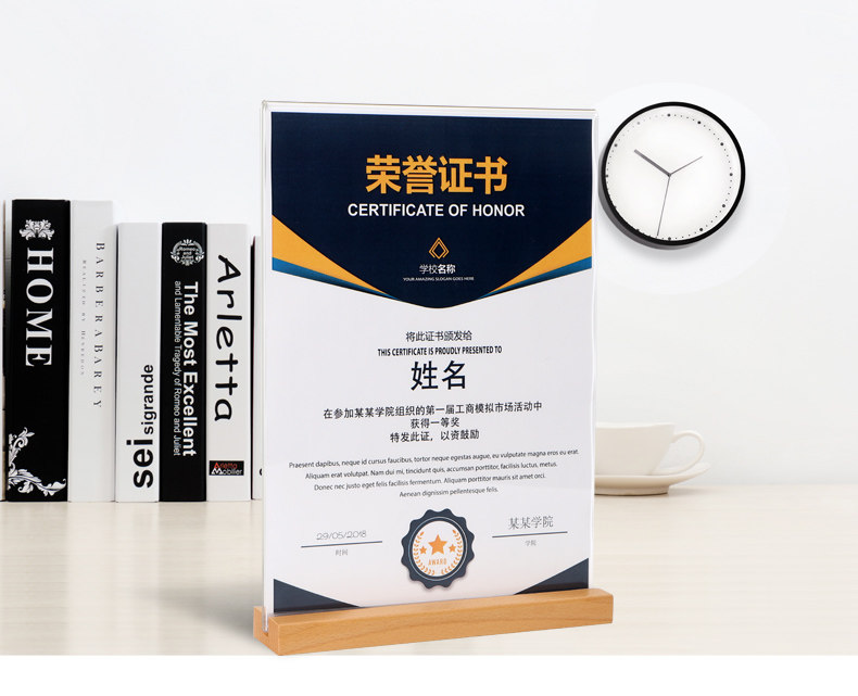 Weiyu a4 Beech Wood Award Shaped Frame Pendulum Table Honors Shell Letter Graduation Completion Certificate Box Authorized Award-winning Document Box