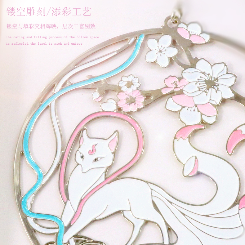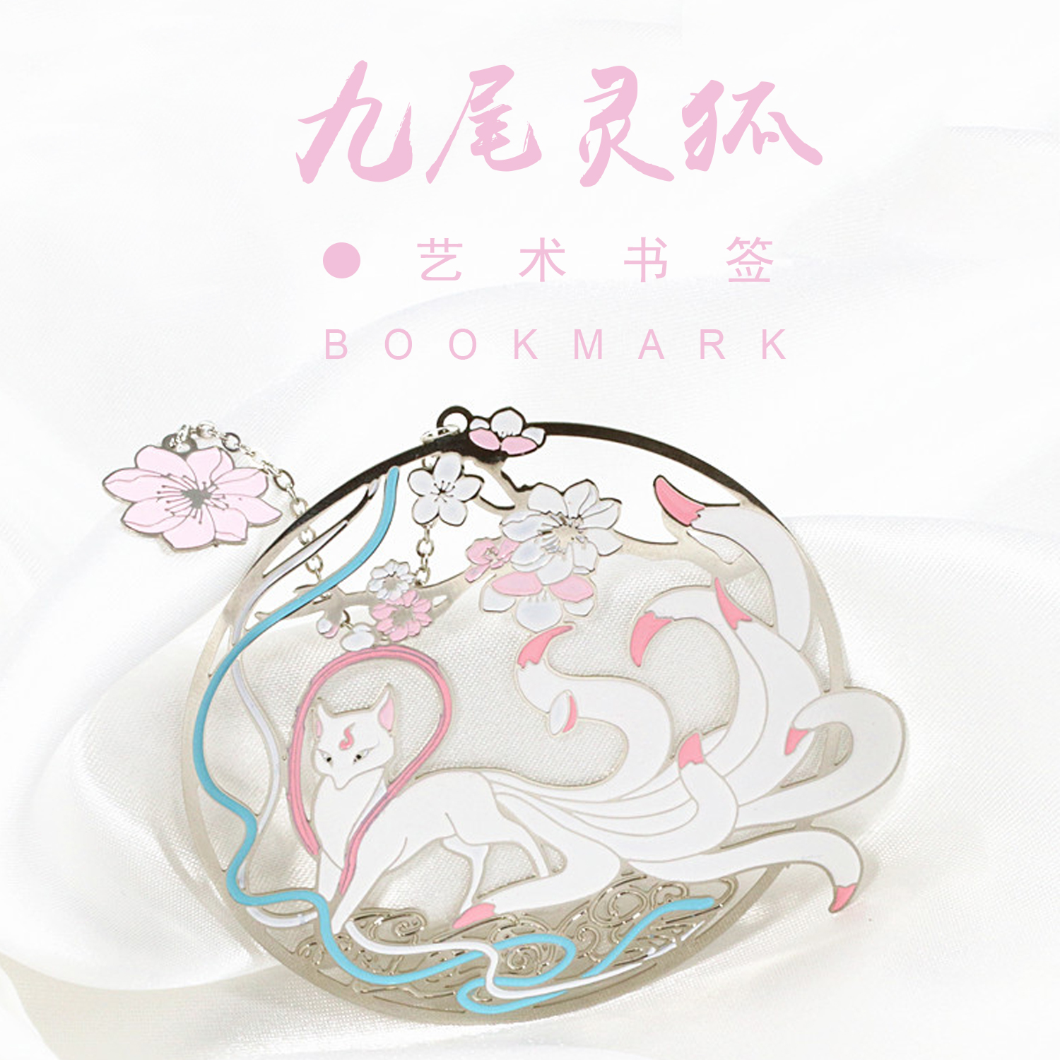 Nine-tailed fox metal bookmark Chinese style classical cultural and creative small fresh peach blossom white fox literary gift ancient style hollow point color fox art bookmark