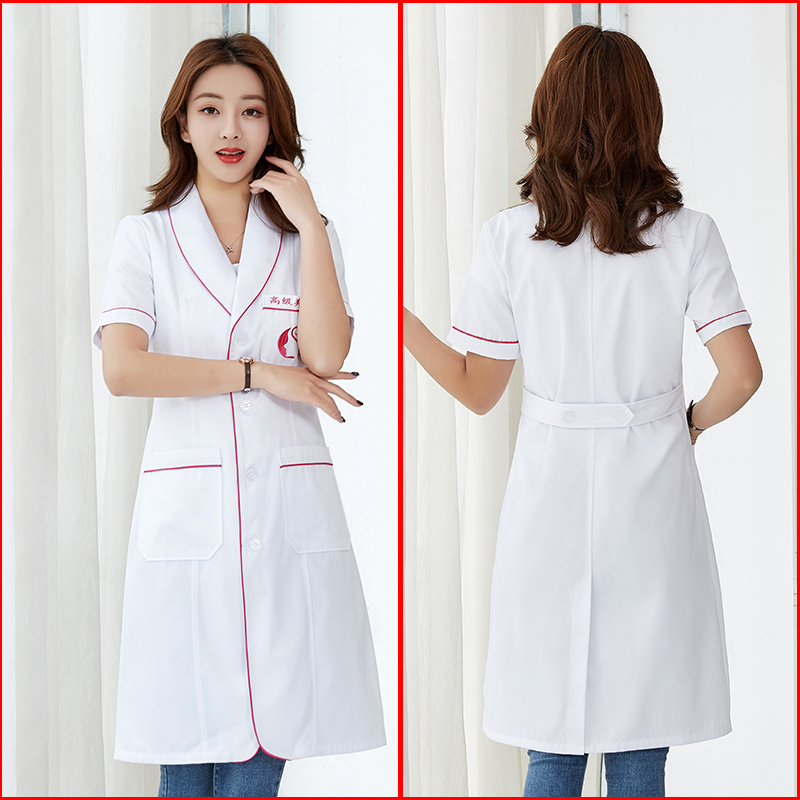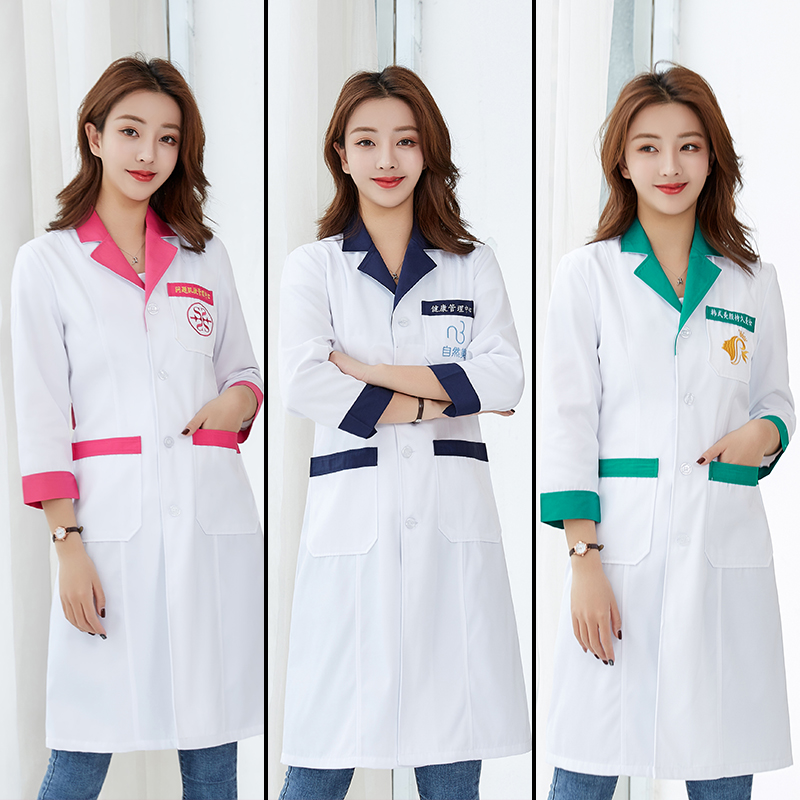 Han edition white coat of white coat management beauty salon embroidery division embroidered with long sleeve short sleeve doctor to serve summer female nurse