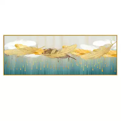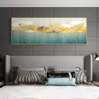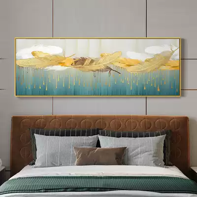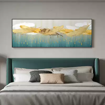 Light luxury bedroom bedside decorative painting horizontal large feather gold leaf room hanging painting warm romantic background wall mural