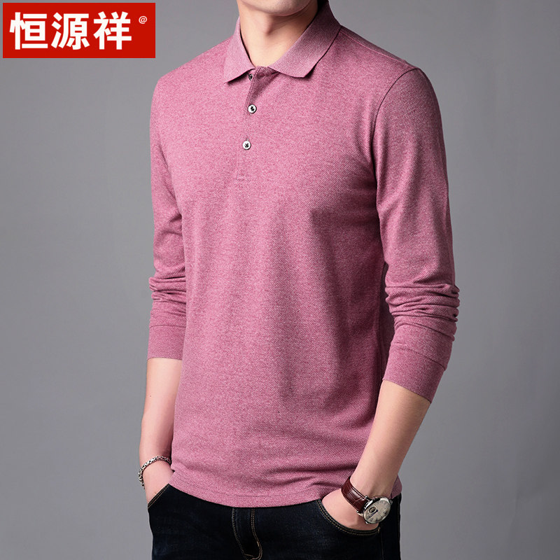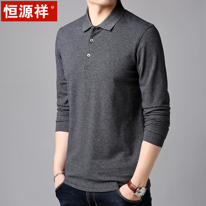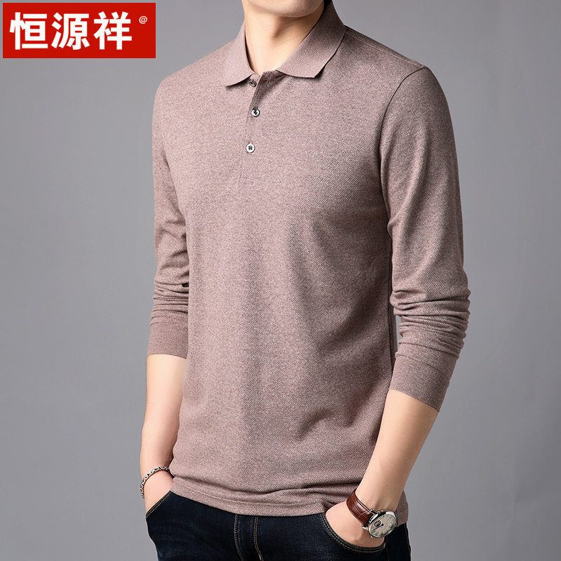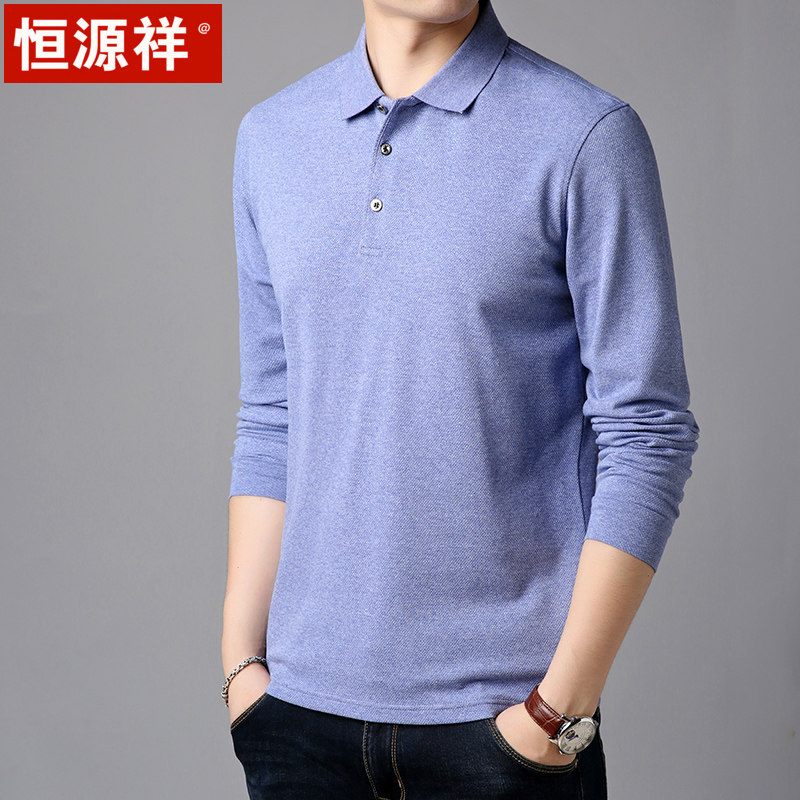 Hengyuan Xiang Fall Men's Long sleeves T-shirt male turn in pure color silk light cotton turtlenecks Polo shirt for young dads