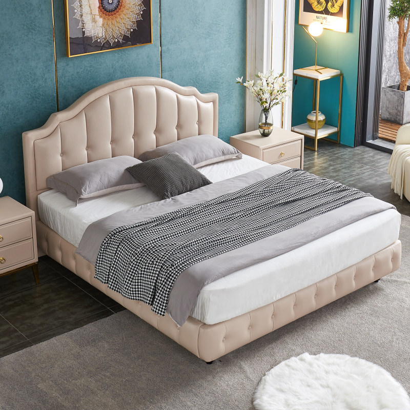 New American pine bed boardboard modern double Nordic style bed bedside backback simple leather cloth