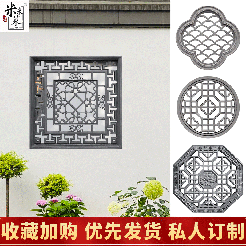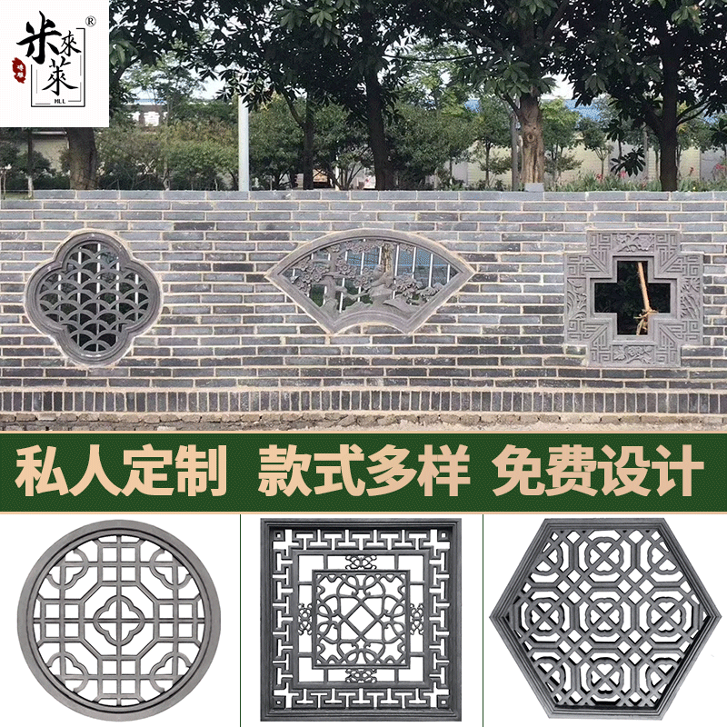 Fan-shaped hollow brick carving Chinese style antique shadow wall ancient building background wall wall Fuzi window flower cement decoration customization