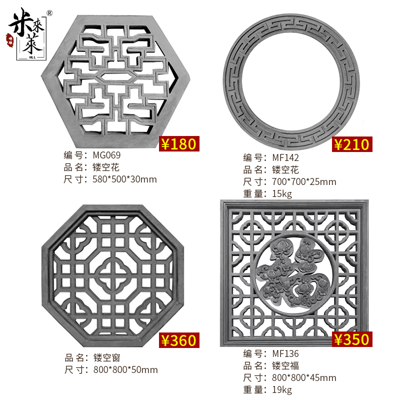 MF141 Fan Tile MF800 Plum Blossom Window 800 MF155a Fan Plum Blossom MF800 Plum Blossom Window 1 m MF155b Fan Orchid MF155c Fan Bamboo MF155d Fan Chrysanthemum MF155e Scallop Peony MF807 Round 600 MF808 Circle 800 MG008 Hexagonal Window MG061 China Knot 800 MG00 MG01 Chinese Knot 960 MF136 Skeleton Fu 800 MF801 Octagonal Window 800 MF031 Peony Window 900 MF808 Round 1 meter MF143 Wufu Bong Shou 1 meter MF132 Vase window 1 meter MF803 skeleton window 800 MF1000 skeleton window 800 MF1000 skeleton window 1 meter MF1170 skeleton window 1.17 MF806 Songhe Yannian 600 Zheng MF806 Songhe Yannian 600 anti MF107 auspicious MF806 Songhe Yannian 1.1m MF901 round 500 MF902 Circular Tenglong 450 MF903 Loop 700 MF904 Pattern Window 800 MF905 Skeleton Window 800 MF906 Skeleton Window 1 meter MF907 Length 0.61*0.41 MF908 Long 1.12*1 MF909 Long 0.9*0.6 MF910 Length 1.12*0.34 MF911 Long 1.66*0.34 MF781 Plum Blossom MF781 Orchid MF782 Bamboo MF783 Chrysanthemum 1.4m Square Window Flower MF570 Length 0.9*0.57 MF090 Zi Zi Dragon Flower Grid MG009 Long 1.08*0.77 MG007 Assorted Window Flower 800 MG069