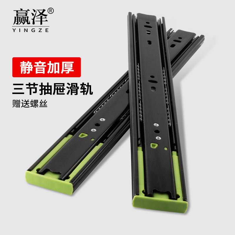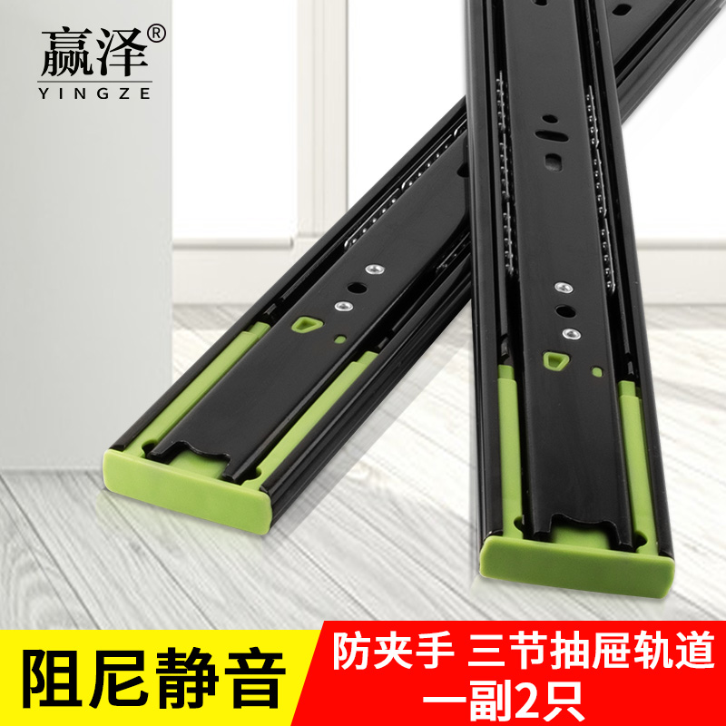 Drawer track three - track track household cabinet thickness buffer damper silent guide rail computer tablekeyboard slide track